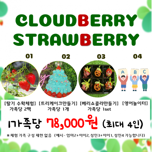 [2024~2025]딸기체험프로그램 페이지 정보 작성자 클라우드베리 작성일24-12-18 12:59 조회10,879회 댓글0건 관련링크 이전글 다음글 목록 본문 예약바로가기 http://cloud-berry.co.kr/bbs/board.php?bo_table=sub0101 댓글목록 등록된 댓글이 없습니다. 이전글 다음글 목록